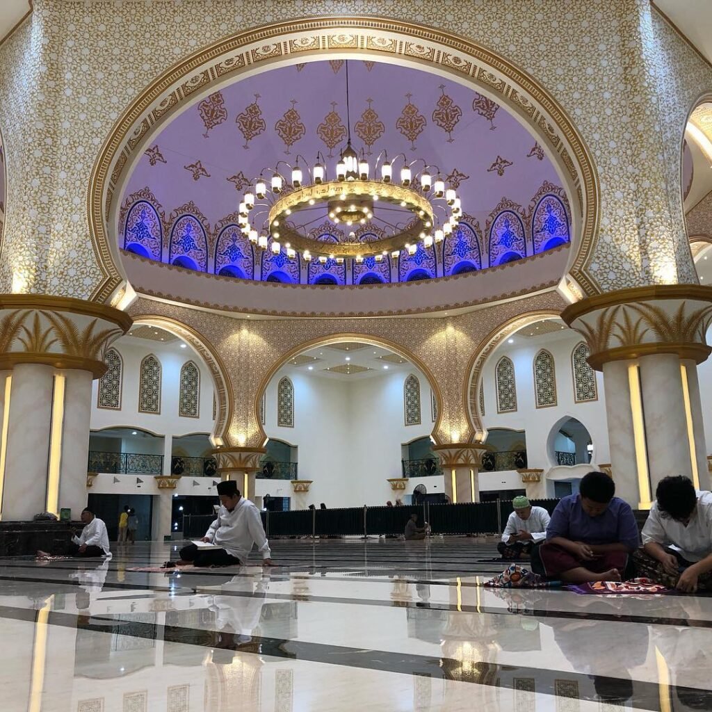 Plafon kubah paintbrush mempercantik interior masjid dengan motif polos, kaligrafi, hingga abstrak. Sentuhannya menambah nilai artistik sekaligus menciptakan suasana yang tenang.